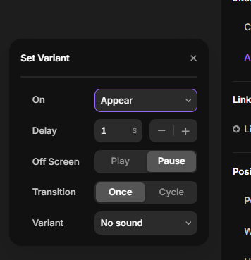!Important! if you add a audio that is 3 seconds long you must press on the "Playing on click variant" and then at the appear set the delay to the audio length
