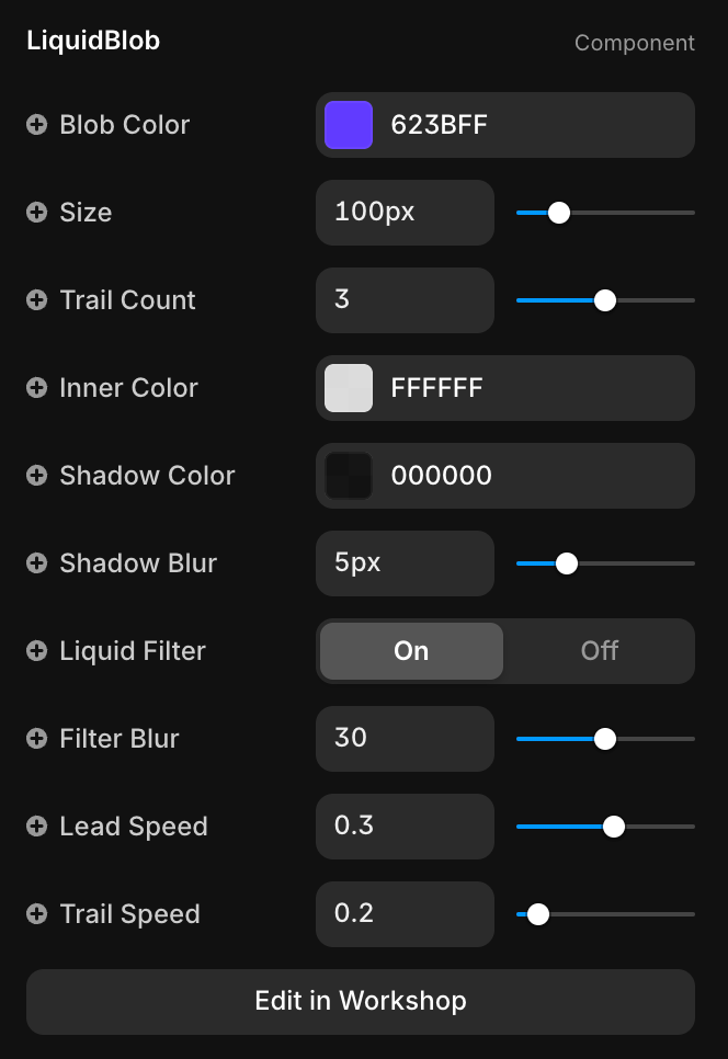 Customization: Easily adjust the blob's size, color, speed, and elasticity without touching a line of code.