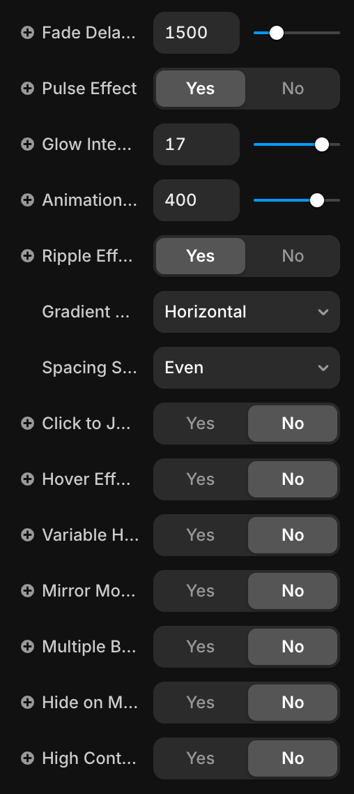 Adjustable segment count (10-50), width, and spacing