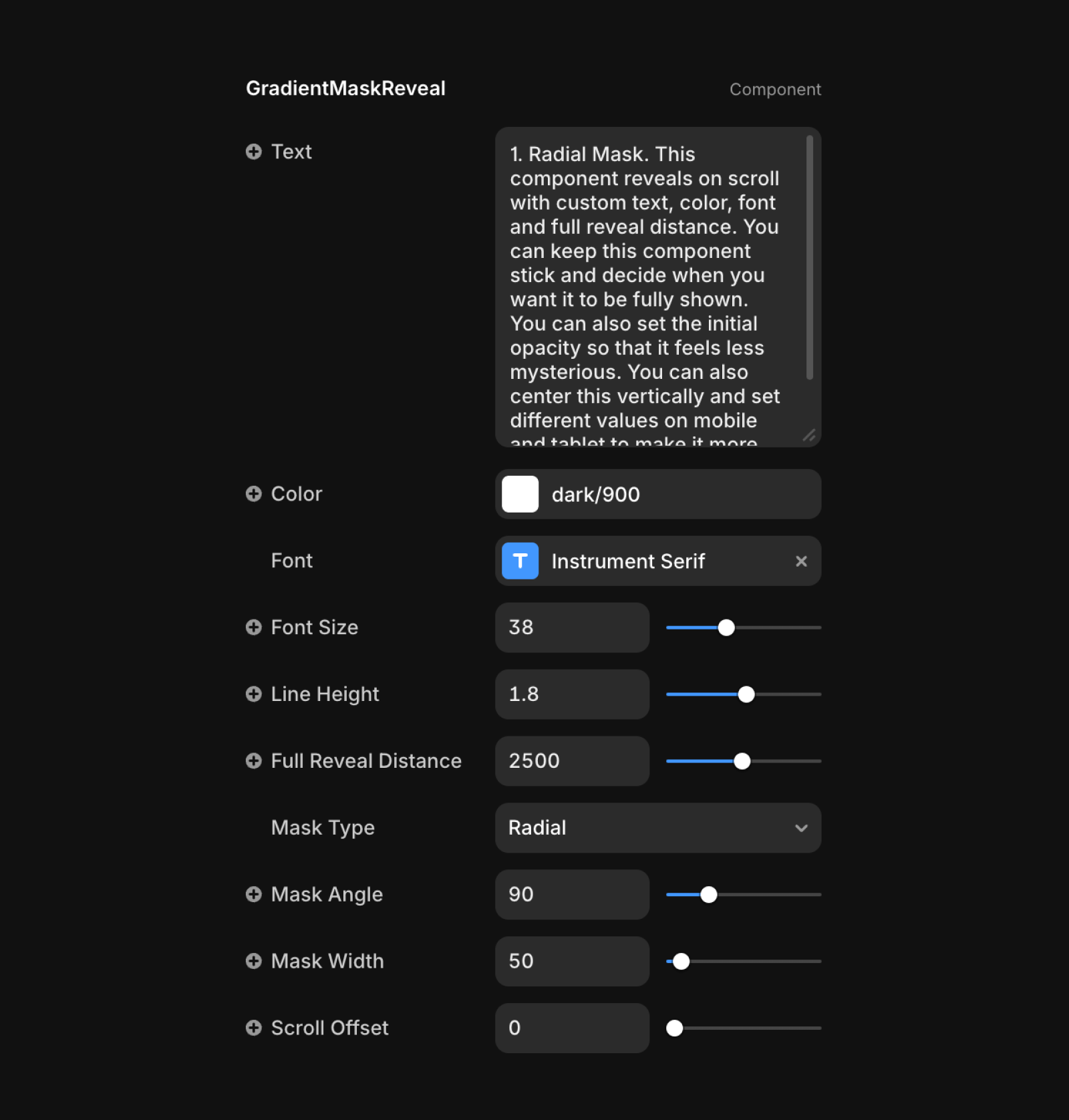 5. Fine-tune the animation by setting the reveal distance and scroll offset to control when and how the text appears