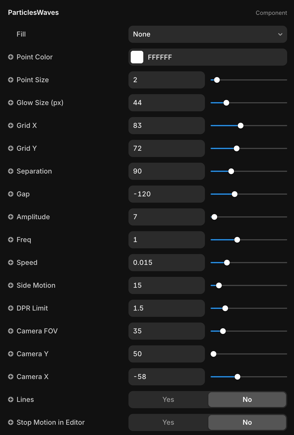 Calm particle waves for hero/footer backgrounds and CTA sections. After your purchase, you will receive a link to the Component URL. Need copy URL and paste to Section.