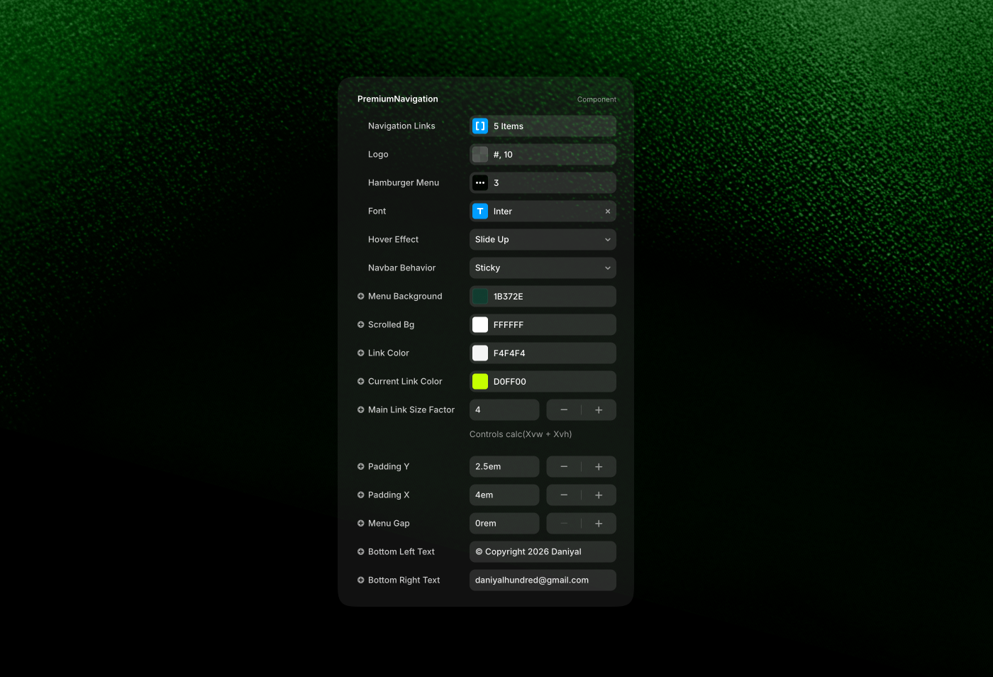 This component combines a clean sticky navbar with a cinematic menu reveal. It reacts to scroll, feels responsive to every interaction, and keeps the focus where it belongs—your content. Hover animations are built in, transitions are smooth by default, and everything is easy to control directly from Framer.