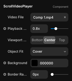 Customize your setup with adjustable playback speed for cinematic or subtle effects. Choose your viewport trigger position โ top, center, or bottom โ to decide when the video starts playing based on scroll position. The object fit option lets you tailor how the video fills its container, from cover to contain, maintaining perfect visual balance.