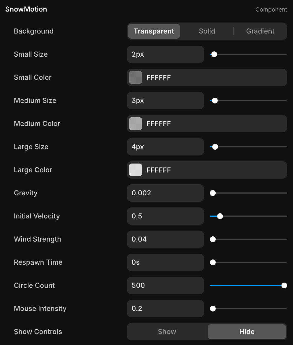 Bring life and realism to your Framer projects with SnowMotion, a next-gen particle simulator built with true motion physics. Customize every flake, control environmental forces, and craft the perfect atmospheric effect — from gentle snowfall to dramatic cosmic storms.
